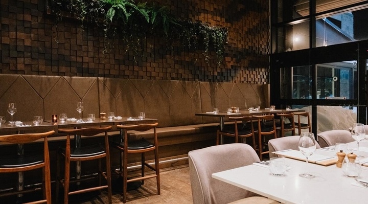 The restaurant Îlot Repère Gourmand, located inside the Entourage sur-le-Lac hotel, offers a modern open-concept dining, allowing guests to watch the team of chefs in action.